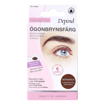 Depend Øjenbrynsfarve i mørk brun gør det hurtigt og nemt at farve dine øjenbryn derhjemme. Den giver et permanent farveresultat, der holder i op til 6 uger, så du ser ekstra frisk ud om morgen, når du dyrker sport, soler dig, bader eller laver andre aktiviteter, hvor du ikke bærer makeup. Denne permanente øjenbrynsfarve giver dig naturligt markerede og fyldige bryn på blot et par minutter!