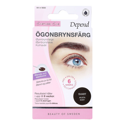 Depend Øjenbrynsfarve i sort gør det hurtigt og nemt at farve dine øjenbryn derhjemme. Den giver et permanent farveresultat, der holder i op til 6 uger, så du ser ekstra frisk ud om morgen, når du dyrker sport, soler dig, bader eller laver andre aktiviteter, hvor du ikke bærer makeup. Denne permanente øjenbrynsfarve giver dig naturligt markerede og fyldige bryn på blot et par minutter!