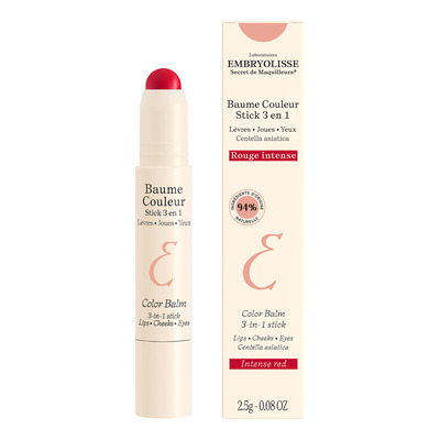 Embryolisse Color Balm 3-In-1 Stick Intense Red er en alsidig, fugtgivende balm, der kan bruges på læber, kinder og øjne. Den cremede formel giver et naturligt, friskt look med en smuk rødlig nuance. Produktet er beriget med centella asiatica-ekstrakt, der plejer og beskytter huden.