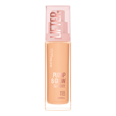 Maybelline New York Lifter Plump & Glow Foundation 118 har en kosmetoklinisk testet sammensætning. Den giver et friskt og sundt udtryk uden at sætte sig i linjer. Farven 118 er velegnet til lys hud med varme eller neutrale undertoner og efterlader huden med en ensartet og strålende overflade. Denne foundation er let at påføre og kan opbygges efter behov.