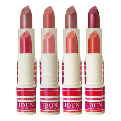 Disse lækre og cremet læbestifter fra IDUN Minerals har en næsten transparent og skinnende finish på læberne. De smelter nærmest på læberne og virker elegante. Læbestifterne er lavet på en vegansk formel af rene mineralpigmenter samt sheasmør og multebærolie, der fugter læberne.