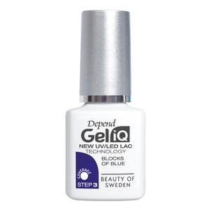 Depend Cosmetic Gel iQ Blocks of Blue er en gelpolish i en intens blå farve med fuld dækkeevne og glat finish. Den nye gel-formel giver et fyldigt og skinnende resultat, som adskiller sig fra almindelig neglelak. Lakken kræver ingen filning af naturneglen eller brug af stærk primer, kun en let forberedelse med mild Pre-Cleanser.