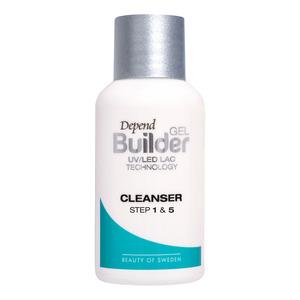 Depend Gel Builder Cleanser er en specialudviklet væske til brug før og efter påføring af Gel Builder. Før behandlingen sikrer Cleanser, at negleoverfladen er helt ren og fri for fedt og støv, hvilket giver optimal vedhæftning. Påfør produktet på en bomuldspad og rengør neglen grundigt. Lad neglen lufttørre i cirka 30 sekunder uden at røre overfladen. Dette trin erstatter buffing og brug af primer.