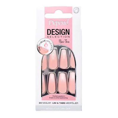 Depend Design Selection French Ombre Coffin er kunstige negle i fleksibel kvalitet, der giver en perfekt pasform. Designet er elegant og moderne med en let afrundet coffin-form. Neglene er nemme at påsætte og sidder godt på dine egne negle. Du vælger selv, om du vil bruge den medfølgende lim eller tabs, da begge metoder er hurtige og holdbare. Pakken indeholder 24 negle, så du nemt finder den rette størrelse til hver finger.