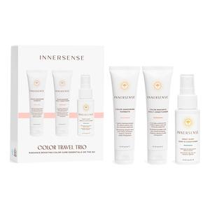 Innersense Color Travel Trio er et praktisk rejsesæt med tre plejende produkter, der beskytter farvet hår og holder det sundt og fugtet. Sættet indeholder: Color Awakening Hairbath, en skånsom farvesikker shampoo, Color Radiance Daily Conditioner, der genopretter fugt og styrke, samt Sweet Spirit Leave In Conditioner, som tilfører ekstra pleje og gør håret lettere at style.
