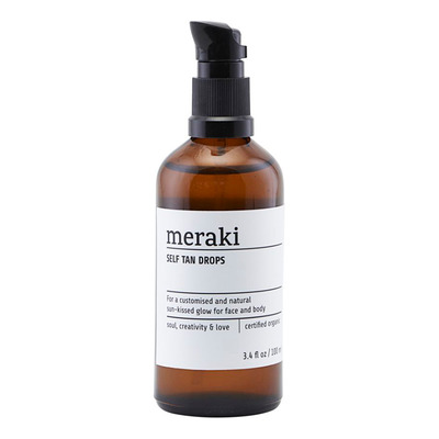 Self Tan Drops fra Meraki er baseret på en innovativ formel designet specielt til at give dig en 100% skræddersyet glød. Den er blandt andet baseret på aloe vera samt havre- og agurkeekstrakter, som virker nærende og fugtende på huden. Den smukke kulør opnås via indholdet af dihydroxyacetone (DHA), som stammer fra sukkerroer/sukkerrør. Self Tan Drops er baseret på økologiske ingredienser og kan anvendes overalt på kroppen.