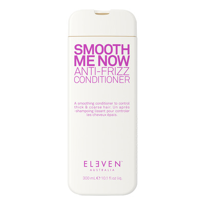Eleven Australia Smooth Me Now Anti-Frizz Conditioner er en nærende balsam til tykt og kruset hår. Den fugter håret i dybden og efterlader det glat, blødt og nemt at kontrollere. Formlen med hydrolyseret hvedeprotein og hvedestivelse hjælper med at udglatte hårstråene og give en langvarig anti-frizz effekt, selv i fugtigt vejr. Bruges før styling for optimal kontrol og pleje.