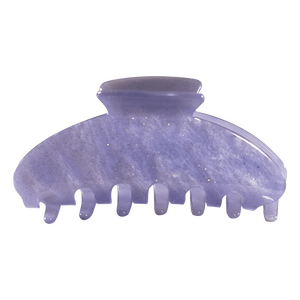 Hvad enten du vil pifte dit outfit op med lidt ekstra farve eller blot vil gøre det nemt og hurtigt at sætte dit hår op, er den fine hårklemme fra Happy et must. Denne hårklemme har en smuk, lilla farve med små glimmerkorn, der giver et festligt og feminint udtryk. Klemmen måler ca. 10 cm og er derfor ideel til opsætning af hele håret. "Tænderne" på klemmen er længere end normalt, hvilket gør, at klemmen sætter sig bedre fast i håret og forhindrer, at den glider ud.
