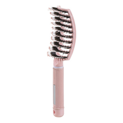Yuaia Curved Paddle Brush Lyserød med vildsvinehår som fordeler de naturlige olier i håret