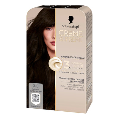 Schwarzkopf Creme Supreme 3-0 Natural Darkest Brown er en plejende hårfarve med styrkende Bonding-teknologi