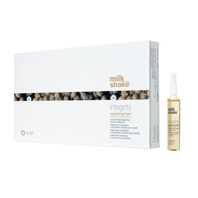 Disse Integrity Repairing Hair fra Milk_shake er en dybdeplejende hårbehandling, der omstrukturerer og genopretter tørt, skadet og kemisk behandlet hår. Kuren arbejder både i de indre og ydre hår, så du opnår den bedste effekt. Kuren er en koncentreret protein- og aminosyrer hårkur, der efterlader håret blødt og strålende. Kuren indeholder bl.a. Muru Muru-ekstrakt, der plejer og nærer håret i dybden.