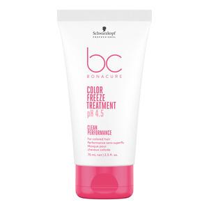 Schwarzkopf BC Color Freeze Treatment er en intensivt genopbyggende kur til farvebehandlet hår, som giver dybdegående pleje. Sammensætningen af ingredienser reducerer samtidig frizz og udglatter håroverfladen. Én af de effektive ingredienser er keratin, som fylder de strukturelle mellemrum mellem ydersiden af håret og fiberstammen ud.