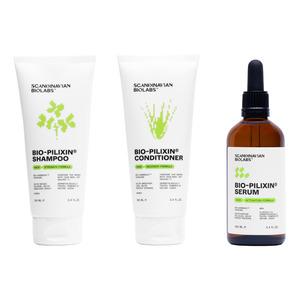Scandinavian Biolabs Hair Activation Routine Men er en 3-trins hårplejerutine udviklet til mænd, der ønsker at reducere hårtab og støtte almindelig hårvækst. Sættet består af Bio-Pilixin Shampoo, Conditioner og Activation Serum, som tilsammen styrker håret og plejer hovedbunden. Hårprodukterne indeholder plantebaserede vækstfaktorer, udviklet med stamcelleteknologi, som målrettet arbejder med hårets naturlige cyklus. Shampoo og balsam renser og plejer håret skånsomt, mens serummet virker aktivt i hovedbunden.