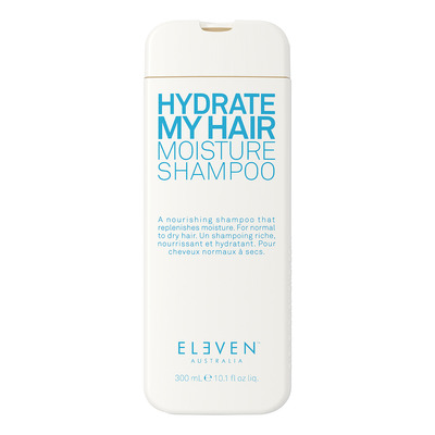 Eleven Australia Hydrate My Hair Moisture Shampoo er en daglig shampoo, der effektivt tilfører fugt og pleje. Den er udviklet til at modstå udtørring fra vind, varme og andre klimatiske påvirkninger. Shampooen er beriget med hydrolyseret soyaprotein og majsprotein, som styrker hårstråene og giver naturlig volumen. Agurkeekstrakt og quinoa beskytter og genopbygger håret, så det efterlades blødt og glansfuldt.
