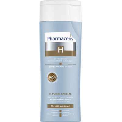 Har du problemer med skæl af forskellig art og oplever eksempelvis kløe, irritation og afskalning af huden? Pharmaceris H-Purin Special Shampoo er en specialshampoo, som er særdeles effektiv til dig, der oplever symptomer på skæl af forskellig art, herunder tørt og fedtet skæl, kløe, irritation og afskalning af huden. Denne shampoo behandler både tørt og fedtet skæl og er udviklet med en dermatologisk formel til følsom hud.