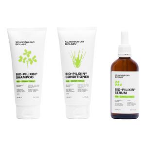Scandinavian Biolabs Hair Activation Routine Women er en 3-trins hårplejerutine udviklet til kvinder, der oplever begyndende eller moderat hårtab. Sættet består af shampoo, balsam og serum, som arbejder målrettet med hårets naturlige vækstcyklus. Hårprodukterne indeholder plantebaserede vækstfaktorer udviklet med stamcelleteknologi, som plejer hårsækkene og styrker håret. Formlen er kosmetisk og uden hormonforstyrrende ingredienser.