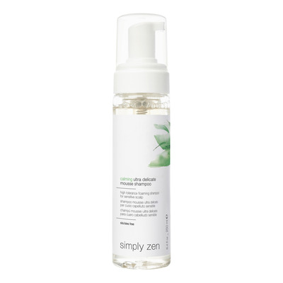 Simply Zen Calming Mousse Shampoo er en skum-shampoo, der er særlig god til en sensitiv og irriteret hovedbund. Shampooen er specielt udviklet til at bekæmpe en tør, irriteret og dryssende hovedbund samt til hyppig hårvask. Det bløde skum virker ekstra beroligende og renser blidt og effektivt. Den er lavet på en formel med et naturligt kompleks og specifikke planteekstrakter, der virker beroligende og balancerende på hovedbunden.