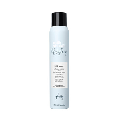 Denne Lifestyling Let It Shine fra Milk_shake er en blødgørende glansspray, der gør håret dejligt skinnende uden at tynge håret ned. Sprayen giver ikke hold til håret på samme måde som en hårlak, men giver udelukkende glans til håret. Ønsker du også hold til håret kan du med fordel anvende Milk_shake Lifestyling Medium Hold Hairspray. Shine sprayen indeholder quinoaproteiner, der beskytter hårfarven så den ikke falmer samt et UV-filter, der beskytter håret mod solens stråler.