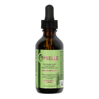 Mielle Rosemary Mint Scalp & Hair Strengthening Oil er en let og plejende hårolie udviklet til at fremme stærkere og tykkere hår. Olien indeholder over 30 æteriske olier og næringsstoffer, der bidrager til at stimulere hovedbunden og pleje hårsækkene. Olien er beriget med biotin, som understøtter hårets længdefastholdelse og generelle vitalitet. Den er ideel til både tør og irriteret hovedbund samt skadet eller tyndt hår.