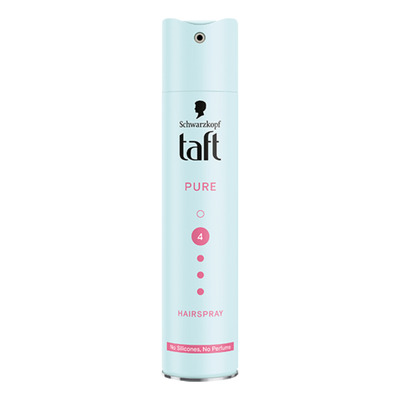 Schwarzkopf Taft Pure Hair Spray er en effektiv hårlak, der giver hold niveau 4 uden tilsat parfume og silikone. Formlen er udviklet til alle hårtyper og beskytter frisuren mod fugt og vind. Den klistrer ikke, er nem at børste ud og efterlader håret med en naturlig følelse.