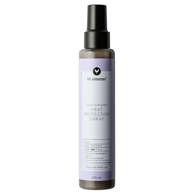 HH Simonsen Heat Protection Spray er en varmebeskyttende spray, som bruges før håret udsættes for varme fra eksempelvis et glatte- eller krøllejern. Før man bruger føntørrer, krøllejern eller glattejern, er det en rigtig god idé at anvende en varmebeskyttende spray, da disse værktøjer kan skade håret. De varmebeskyttende ingredienser, lægger sig som en film om hver enkelt hårstrå, som sørger for at beskytte mod varmeskader, og samtidig beskyttes håret mod udtørring. HH Simonsen Heat Protection Spray beskytter håret mod varme op til 232 grader. Denne spray indeholder arganolie, som giver håret en smuk glans, og som giver håret en anti-statisk effekt.