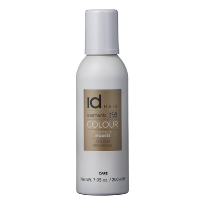 IdHAIR Elements Xclusive Colour Treatment Mousse er en hårmousse, der beskytter og plejer farvet og lysnet hår. Hårmoussen har en blød og cremet konsistens, der efterlader en let følelse i håret uden at tynge. Den indeholder kakaosmør, som tilfører fugt og pleje til håret, samtidig med den gør håret nemt at rede igennem. Moussen kan bruges til alle hårtyper, som har behov for pleje.