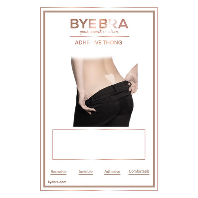 Denne Adhesive Thong i nude fra Bye Bra er en usynlig og selvsiddende trusse, som er diskret under alt tøj. Trussen er særlig velegnet under tætsiddende tøj og aftenkjoler, så du sikkert undgår synlige linjer fra dine trusser. Trussen er lavet i et blødt materiale, som gør den behagelig at bære. Den gennemsigtige trusse kan genanvendes op til 50 gange.