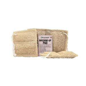 Suztain skuresvampen er fremstillet af kulturplanten Luffa og både snor og syninger er af bomuld. Pakken har ikke plastikindpakning og Suztain loofah svamp er således helt og aldeles fri for plastik.