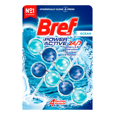 Bref Power Active Ocean DUO er en WC-blok, der giver effektiv rengøring og frisk duft ved hvert skyl