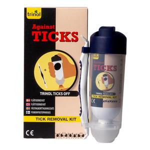 Trinol Ticks Off mod flåter er medicinsk udstyr, som er beregnet til sikkert at kunne fjerne flåter fra huden på mennesker og dyr. Kittet indeholder en spray til at fryse flåten og Tick Remover til sikkert at fjerne den. Beholderen indeholder 60 doser, som er nok til sikker fjernelse af cirka 40 flåter. Sprayen kan både anvendes i alle vinkler, som gør det let at fryse flåter alle steder på kroppen.