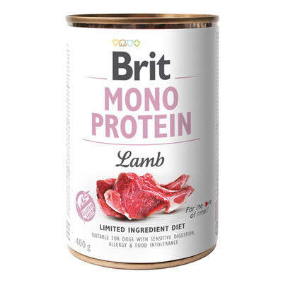 Brit Mono Protein vådfoder m. lam egner sig til hunde med overfølsomheder og fødevareintolerance med få ingredienser