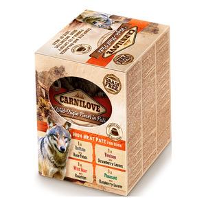 Carnilove Dog Pouch Pate Vådfoder er vådfoder til hunde i fire varianter. Multipakken indeholder fire portionsposer, der indeholder 300 g. med smagene: bøffel med rosenblade, hjort med jordbærblade, vildsvin med hyben og fasan med hindbærblade. Foderet består af 85 % kød og tilbyder unikke proteinkilder, der kan passe godt til hunde med følsom fordøjelse eller behov for variation i kosten.