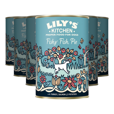 Lily´s Kitchen Vådfoder Fishy Fish Pie kommer nu i en pakke med 6 dåser vådfoder med kalkun, sild og laks