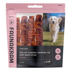 Faunakram 16,5 cm Roasted Rawhide Roll med andefars er en stor tyggerulle til hunde i alle størrelser