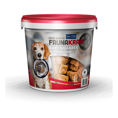 Faunakram godbidder soft squares m. kylling er en semi-moist snack til hunde