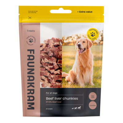 Faunakram okseleversnacks er udviklet i samarbejde med ernæringseksperter og opdrættere for at sikre optimal kvalitet. Disse velsmagende snacks er perfekte som belønning under træning eller som en ekstra forkælelse til din hund. Størrelsen gør dem nemme at håndtere, og den bløde, chewy konsistens kan hjælpe med at styrke hundens tandkød og bidrager til god mundhygiejne. Snacksene består af naturlige ingredienser, som din hund vil elske, samt egner sig til alle hunderacer.