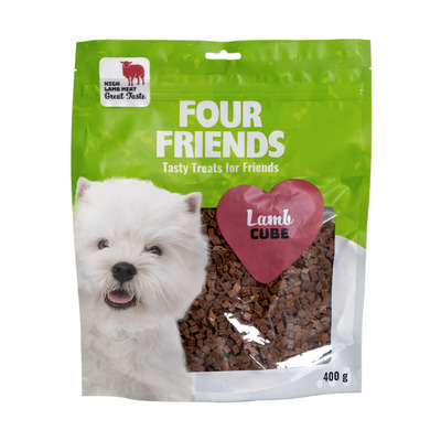 FourFriends Lamb Cube er små godbidder i tern med lam, der er velegnede til alle hunde