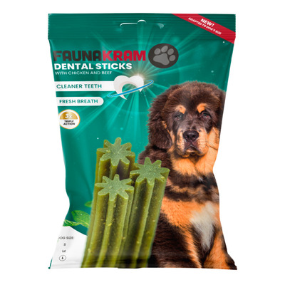 Faunakram dental sticks i størrelse L er velsmagende tyggeben, der er specielt udviklet til store hunde. Disse dental sticks er et ideelt supplement til tandbørstning og kan hjælpe med at reducere plak og tandsten. Giv én stick om dagen som en belønning mellem måltiderne for at støtte din hunds mundsundhed.