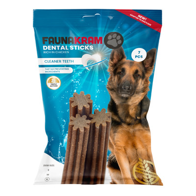 Dentalsticksene leveres i en praktisk 7-pak, der dækker en hel uges behov. De er udviklet i tæt samarbejde med diætister og dyrlæger for at sikre høj kvalitet og effektivitet. Faunakram dental sticks kombinerer smag og funktionalitet på en måde, som din hund vil elske.