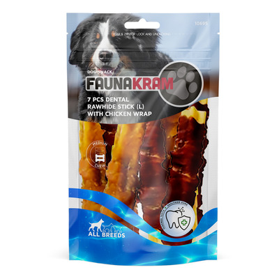 Faunakram dental sticks m. kyllingewrap, kornfri str. L - 220 g.