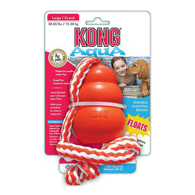 KONG Aqua er et flydende apporteringslegetøj, der giver sjov motion både i og udenfor vandet. KONG Aqua har en skumkerne, der holder den svævende, mens hunden svømmer ud for at hente den.