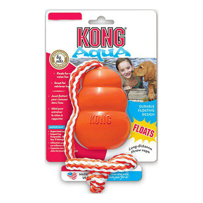 KONG Aqua er et flydende apporteringslegetøj, der giver sjov motion både i og udenfor vandet. KONG Aqua har en skumkerne, der holder den svævende, mens hunden svømmer ud for at hente den.
