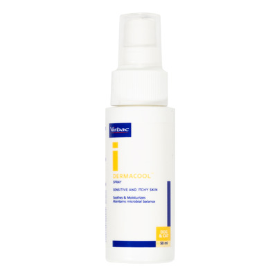Virbac Dermacool Spray er en lindrende og rensende spray til hunde og katte med hudirritation. Den er særligt velegnet til våd eksem og hot spots, hvor den hjælper med at køle, tørre og berolige huden. Sprayen indeholder mentol og troldhassel-ekstrakt, som har en lindrende effekt og bidrager til at reducere kløe, bid og krads.