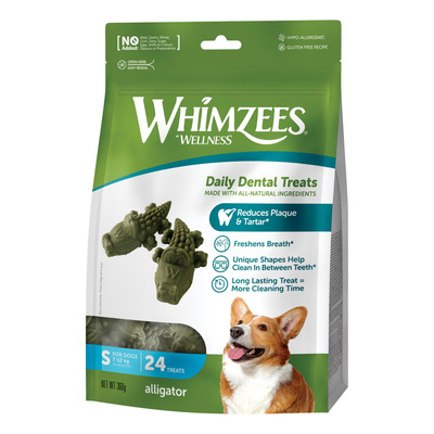 Whimzees Alligator S er sjove, effektive tandplejegodbidder til små hunde