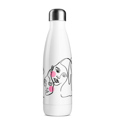 Helt hvid fin flaske med en flot og stilren tegning til dig der er fan af den minimalistiske stil. Brug den i skolen, på arbejdet, i træningscentret eller hvor du har brug for vandet forbliver den ønskede temteratur.