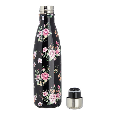 Flasken er blank og meget fin i sit design med de flotte blomster, og den sorte baggrund.