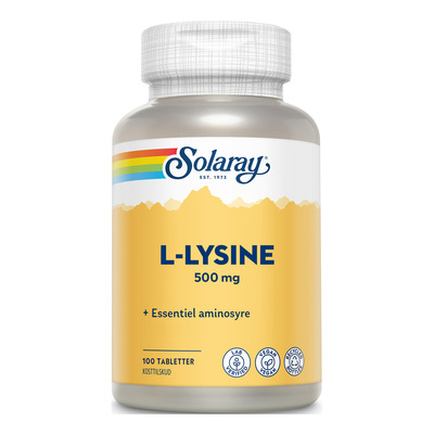Solaray L-Lysine er et vegansk kosttilskud på tabletform, der indeholder L-lysin. L-lysin er en af de 20 amonisyrer, som i kroppen omdannes til protein. L-lysin er en af de 8 essentielle aminosyrer, som kroppen ikke kan danne selv, men derimod skal indtage gennem kosten. Kosttilskuddet indeholder 500 mg L-lysin i fri form pr. tablet. Derudover bærer Solaray L-Lysine mærket 'Lab Verified'.