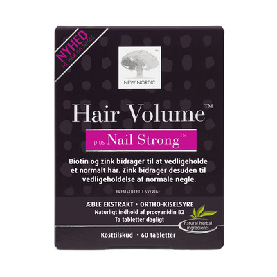 New Nordic Hair Volume plus Nail Strong er til dig, der ønsker at bevare et smukt og kraftigt hår samt ønsker at undgå diffust tab af hår. Ydermere er det også til dig der ønsker at opretholde normale negle.