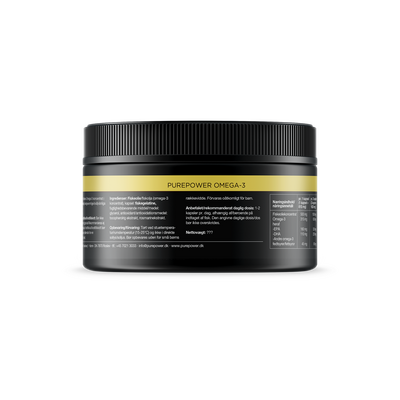PurePower Omega-3 er en smart lille kapsel, der indeholder en passende mængde i forhold til det anbefalede daglige indtag på 250 mg EPA og DHA. Ved at indtage to kapsler dagligt, opnår du let og hurtigt det anbefalede daglige indtag. Kosttilskud fra PurePower er produceret i Danmark, hvilket også betyder at kapslerne overholder de, af fødevarestyrelsen, stillede krav til kosttilskud til atleter.