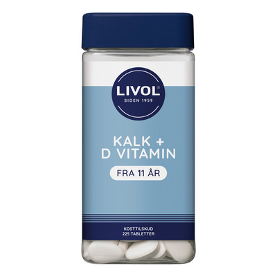 Livol Kalk og D3-vitamin er et kosttilskud med med både calcium og vitamin D3. Calcium er med til at vedligeholde normale knogler og tænder, og bidrager derudover også til en normal muskelfunktion. Udover calcium indeholder tilskuddet også D-vitamin, som bl.a. bidrager til en normal optagelse af calcium i kroppen, og vedligeholder en normal muskel- og nervefunktion samt normale tænder og knogler.